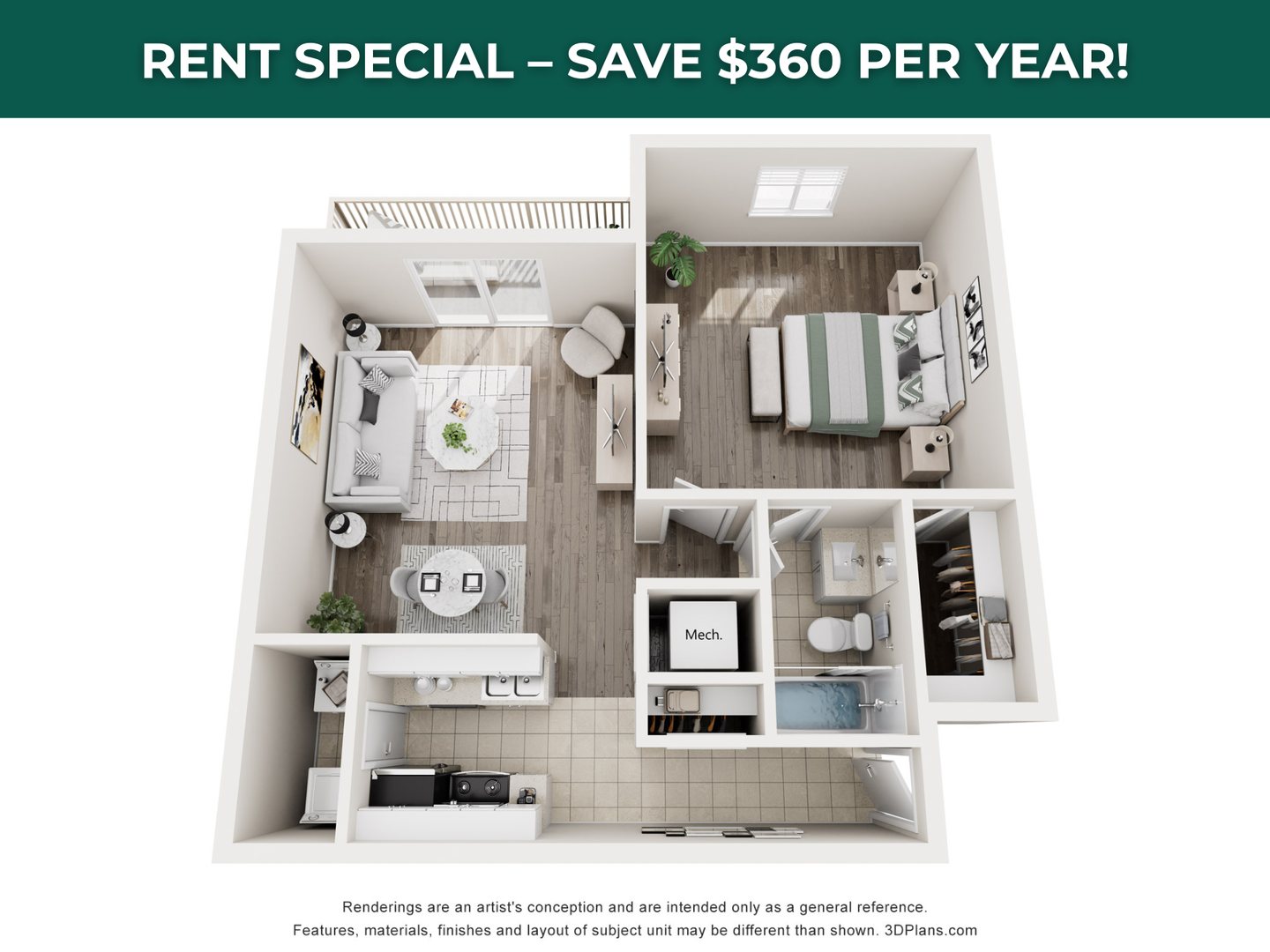 Modern 1-bedroom, 1-bath apartment with open-concept living. Enjoy a full kitchen with stainless steel appliances, in-unit washer/dryer, and ample closet space.