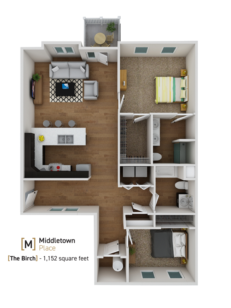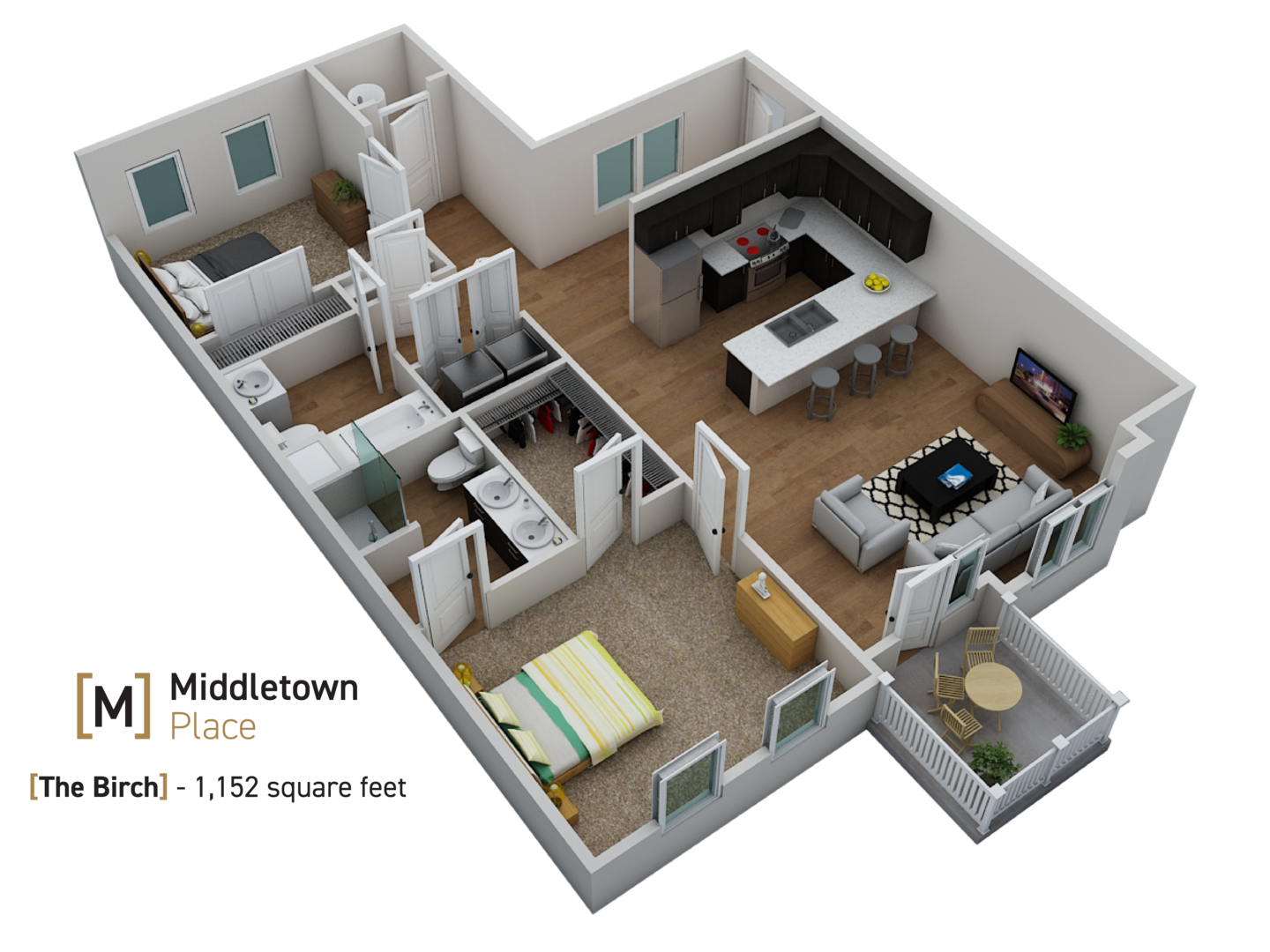 The Birch - 2 Bedroom/2 Bathroom @ Middletown Place Apartments