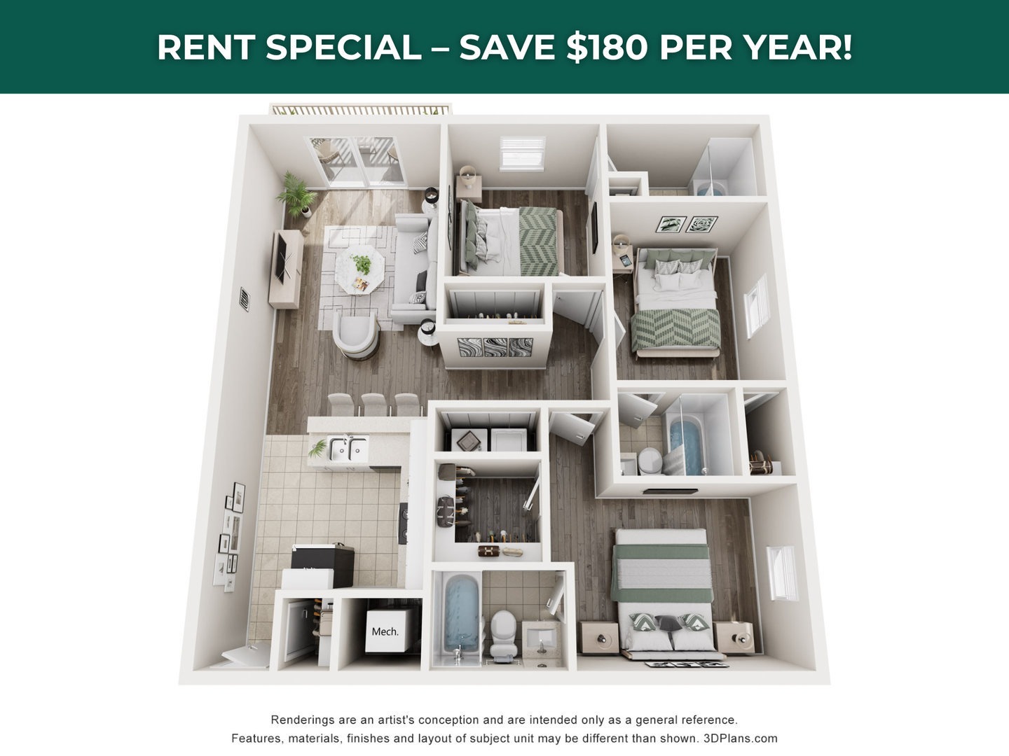 $699.00 Limited Time Rate. $116.00 Off. Immediate Move In Special.