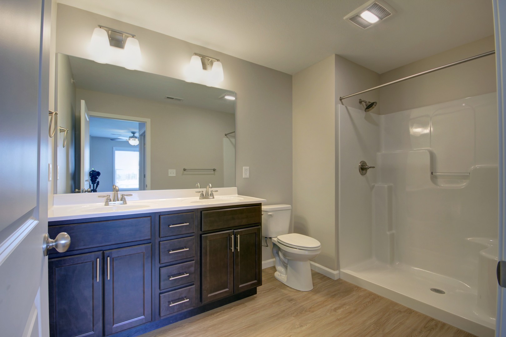 Located on the 1st floor, this spacious 2-bedroom, 2-bathroom, 1,220-sf apartments feature an attached garage, an oversized eat-in kitchen with stainless steel appliances, a spacious great room, and an in-unit washer and dryer. Each bedroom boasts a walk-in closet, and the primary bedroom also includes extra closet space leading into a private bathroom with dual vanities and a walk-in shower. Additional finishes include LED lighting, brushed nickel fixtures, and smart-home technology features, including smart thermostats and video doorbells.
