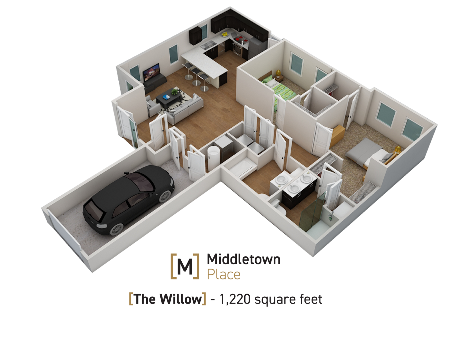 The Willow - 2 Bedroom/2 Bathroom w/ attached garage @ Middletown Apartments