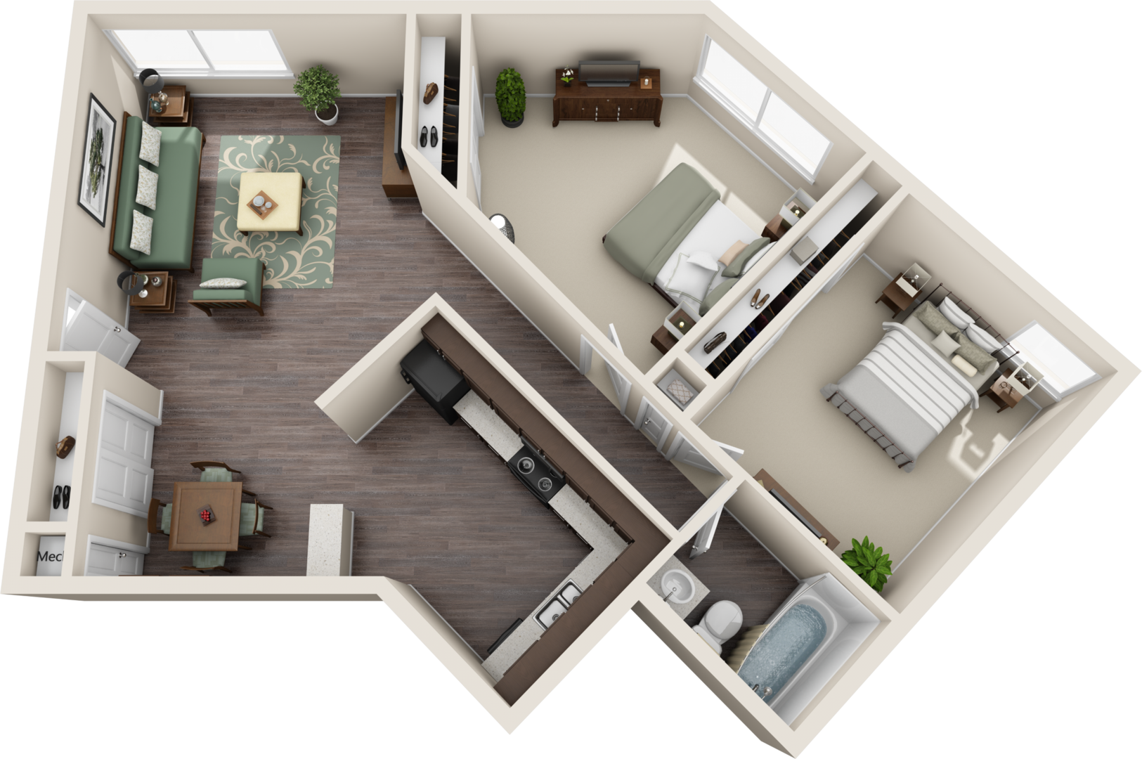 Garden Pointe is near Centre West shopping, restaurants, and more. Enjoy easy access to I-65. Our residents can access a pool with a sundeck, playground, fitness center, and package room.